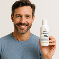 A diferencia de otros productos agresivos, nuestro shampoo combina la potencia del Minoxidil con activos naturales como el romero (estimula la microcirculación), el colágeno hidrolizado (fortalece la fibra capilar) y otros extractos vegetales para cuidar tu cuero cabelludo mientras acelera el crecimiento.